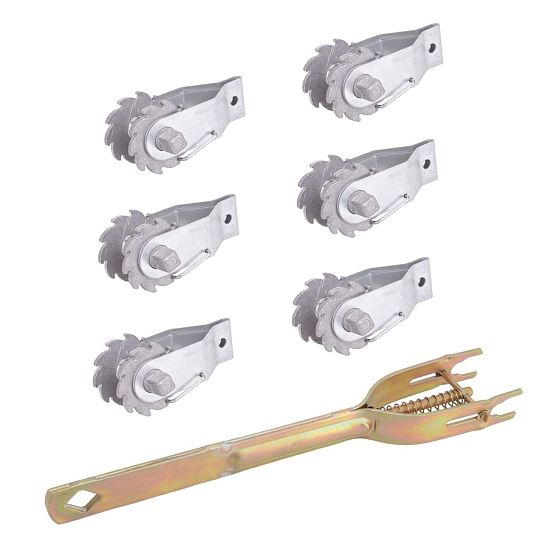 Sada napínáků s rohatkou pro elektrický ohradník + páka k rohatkovým napínákům - 6 ks