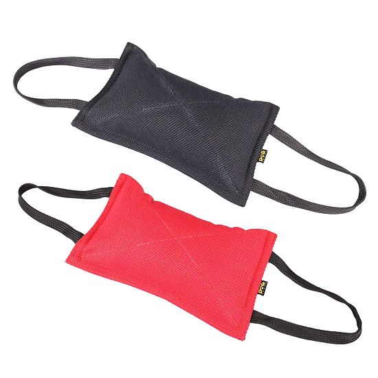 Pešek Ringo ve tvaru polštáře se dvěma uchy pro lepší uchyt. Umožní vám a vašemu pejskovi oblíbenou hru na přetahovanou. Dobře poslouží i při tréninku obran nebo při aportu. V barvě červené nebo černé. Určený pro velká plemena. Český výrobek.