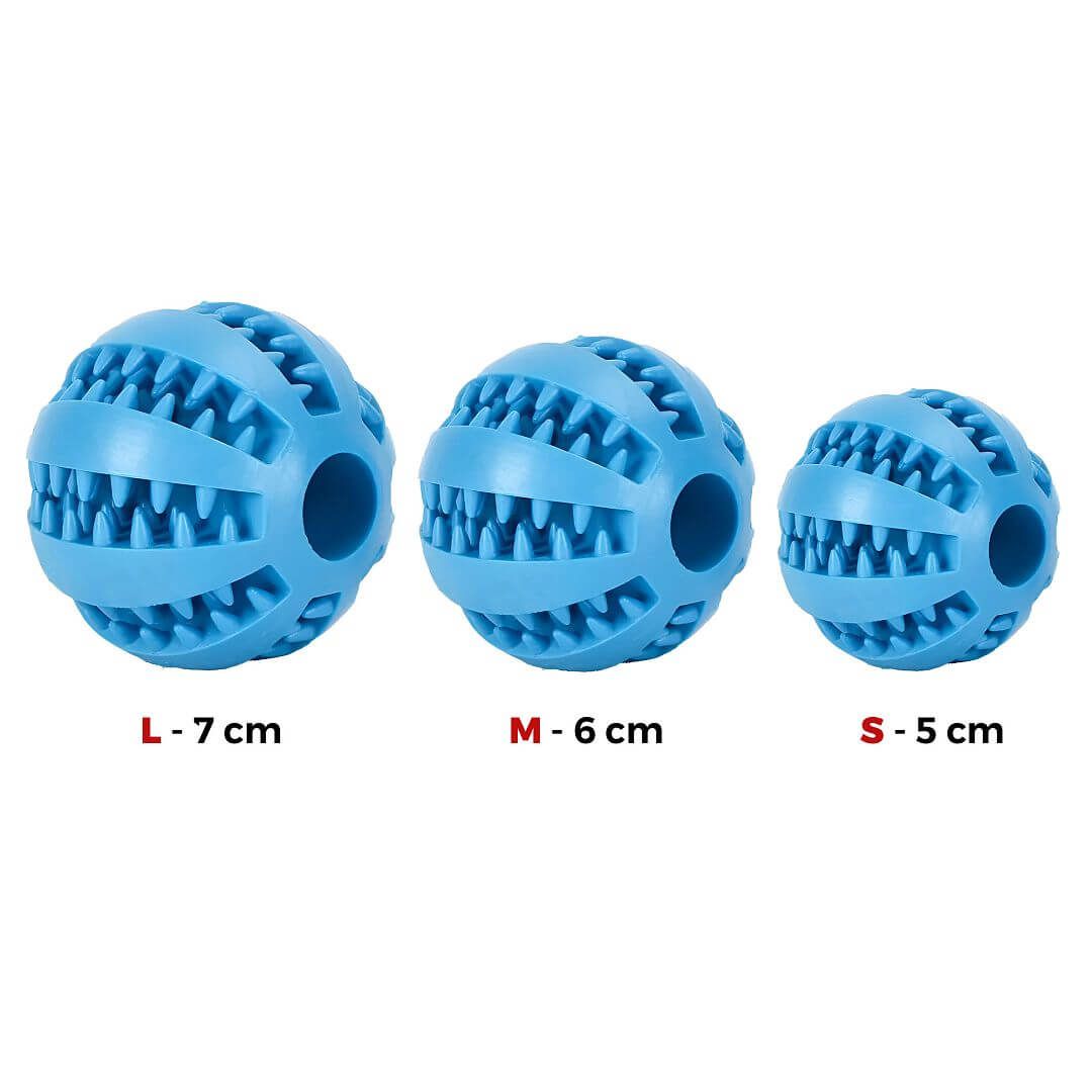 Dentální plnící hračky pro psy 3v1. Nejenže jsou důležitou pomůckou pro jejich zoubky a péči o dásna, ale užijí si s ním spousty legrace a kousání. Míček vyroben z měkkého, pružného a netoxického materiálu. Ve třech velikostech - S, M, L.