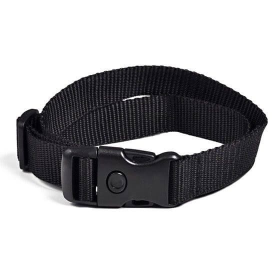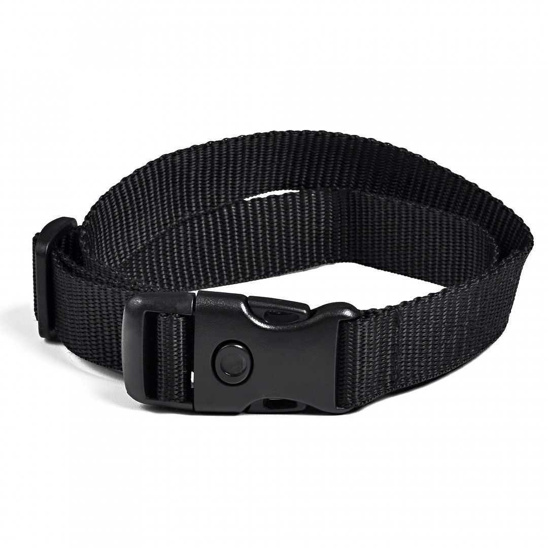 Tkaný černý řemen (obojek) bez oka s plastovou bezpečnostní sponou je určen především pro elektronické obojky. Řemen je vhodný do všech našich přijímačů.