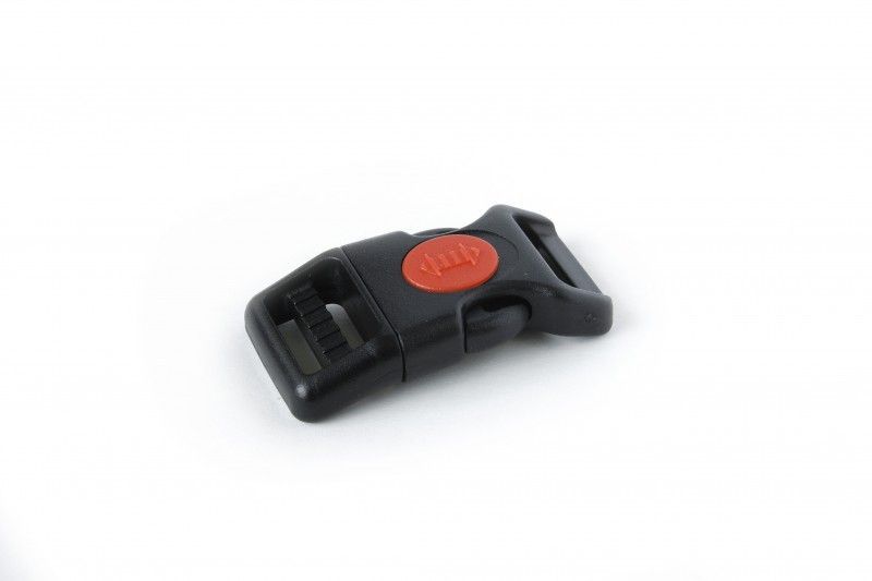 Plastová bezpečnostní spona, snadno omyvatelná. Posuvné bezpečnostní tlačítko, které brání samovolnému odepnutí. Vhodná pro tkané řemeny šíře 20 mm.