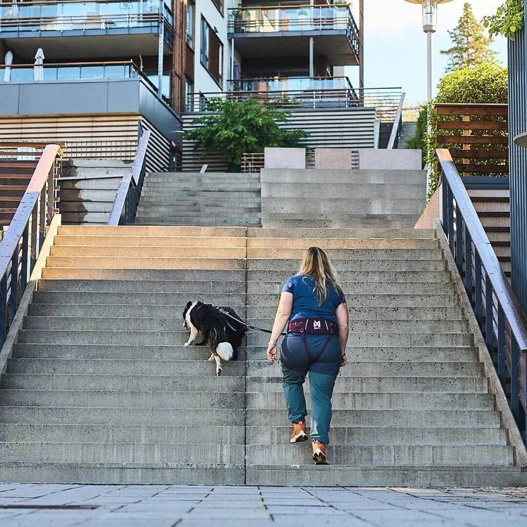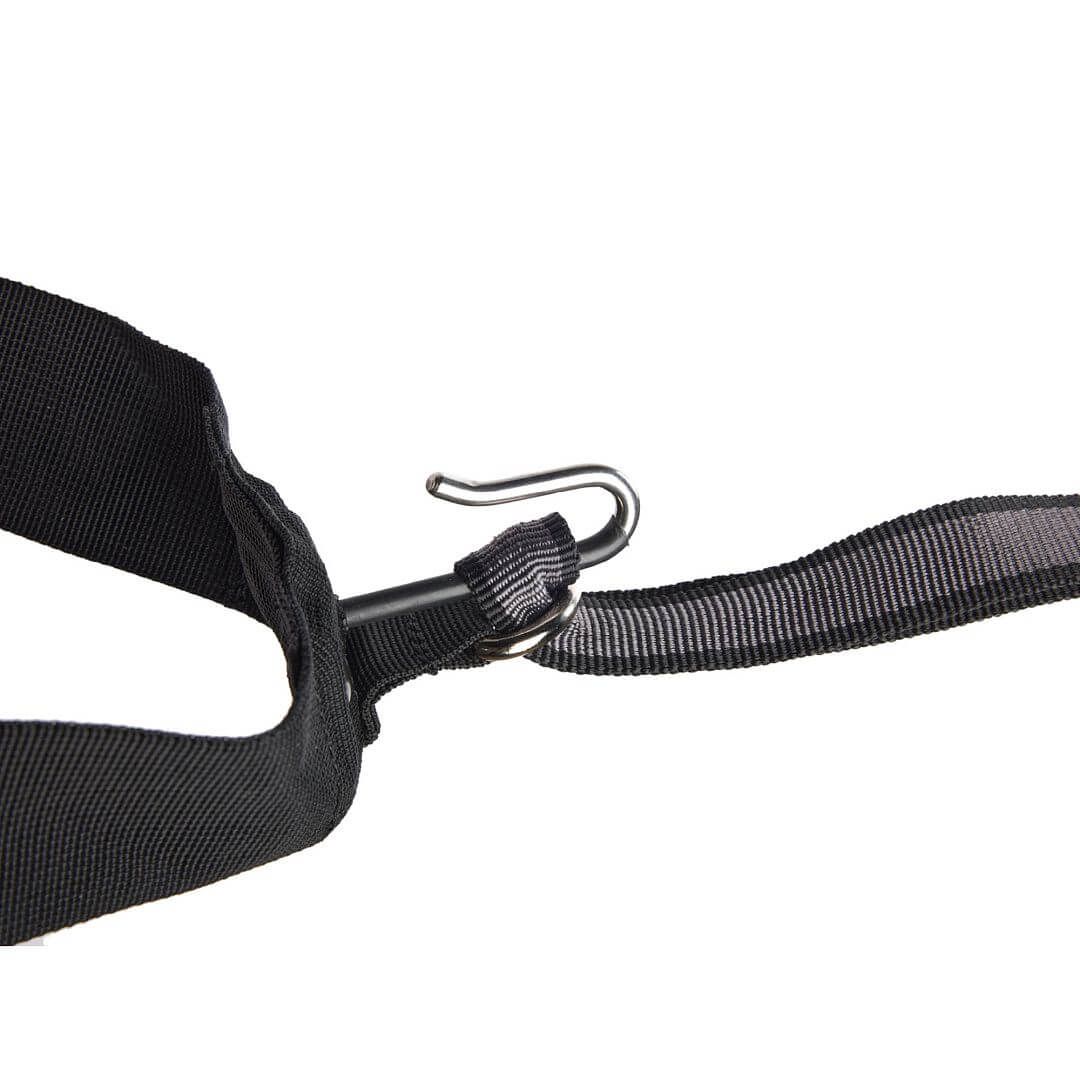 Opasek je vybaven očky pro připojení např. vodítka, batůžku, bundy. Cokoliv, co nechcete nést v ruce. Vodítko se připevňuje v přední části opasku zavěšením do háku. Kovový kroužek zajistí vodítko proti samovolnému vyklouznutí.