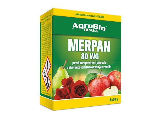 Merpan 80 WDG je kontaktní fungicid s preventivním účinkem potlačující růst mycelia a vytváření výtrusů houbových patogenů rostlin.