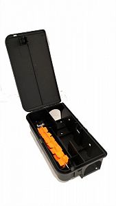 Plastová deratizační stanička Coral v černé barvě, ideální pro použití u zdí, pod paletami, regály..., vyrobeno z pružného, odolného plastu, odolný proti různým povětrnostním podmínkám.