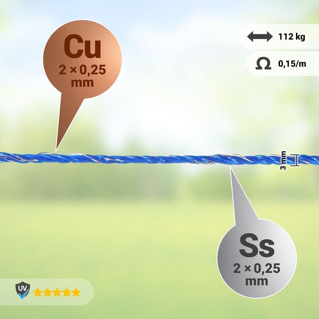 Lanko pro elektrický ohradník, průměr 3 mm, modré, délka 1000 m, 0,17 Ω/m