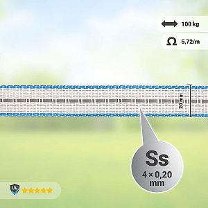 Reflexní páska pro elektrický ohradník, šířka 20 mm, bílo-modrá, délka 200 m