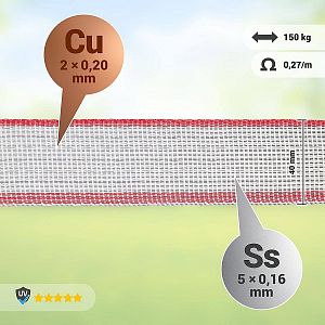 Vodivá ohradníková páska s UV ochranou a šířkou 40 mm. Zesílené okraje pásky zajistí odolnost proti povětrnostním vlivům. Rychlá a jednoduchá montáž. Pro dlouhodobé kvalitní ohrazení.