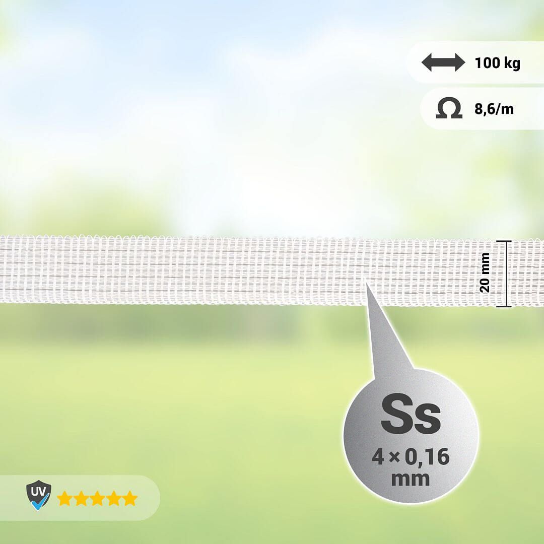 Páska na elektrický ohradník s šířkou 20 mm, bílá, délka 200 m