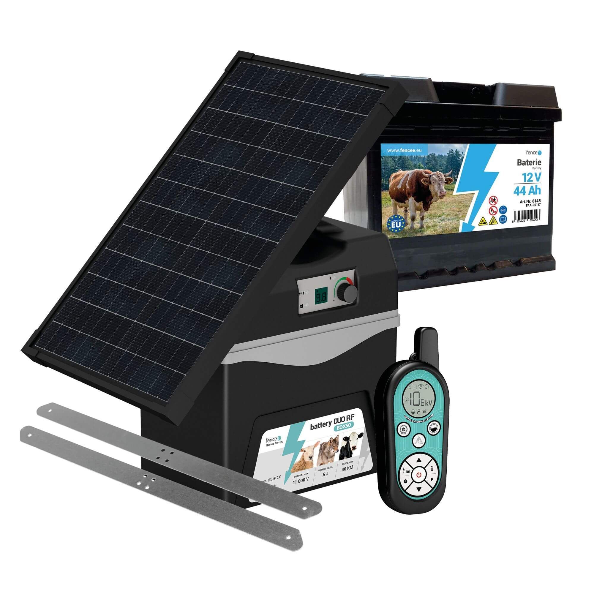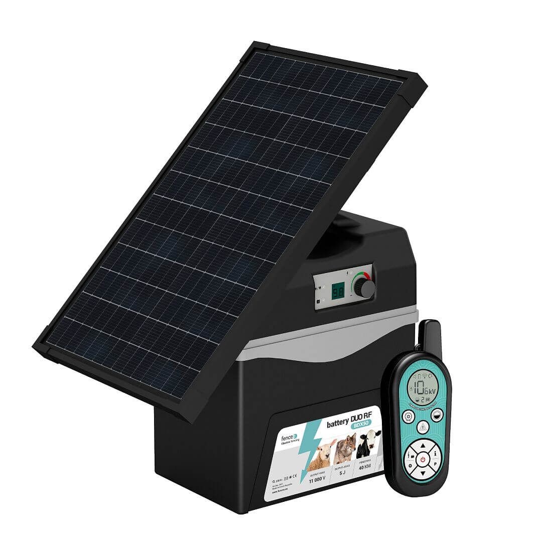 Na bateriový zdroj lze připojit solární panel s výkonem 30 W, který zajistí nepřetržitý provoz kdekoliv na pastvině. Solární panel je upevněn pomocí montážní konzole a lze polohovat směrem ke slunci podle potřeby.