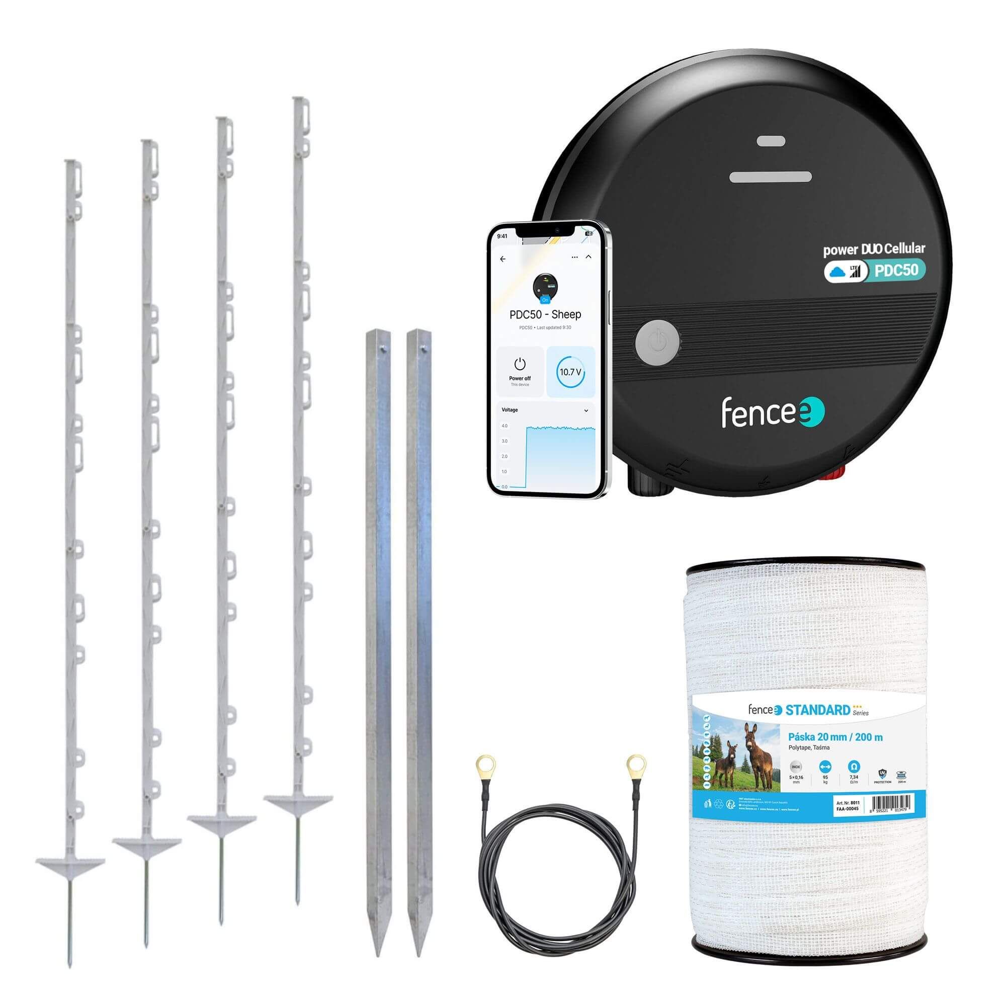 Kompletní sada chytrého LTE elektrického ohradníku s vodivou páskou určená především pro koně, poníky, osly a také na ochranu proti lesní zvěři, která se snaží dostat na vaše zahrady a záhonky.