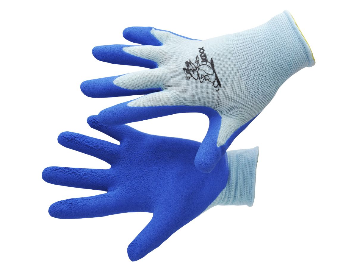Pracovní dětské rukavice velikosti 4 a 5 pro ochranu rukou při pomáhání nejen na zahradě v barvě modré.