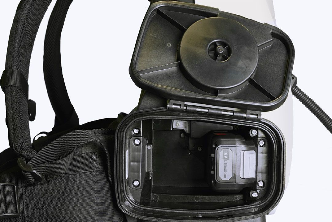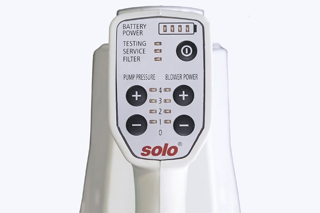 Ergonomické provedení 6l nádrže, nízká hmotnost a profesionální zádové popruhy usnadňují práci a prodlužují provozní dobu. Veškeré ovládání (nastavení tlaku a nastavení výkonu ventilátoru) probíhá skrz intuitivní řídící panel umístěný na ručním aplikátoru (hmotnost aplikátoru je pouze 1 kg). Součástí je indikátor stavu nabití baterie. K dispozici je uživatelům také možnost aretace spouště pro nepřetržitou aplikaci.