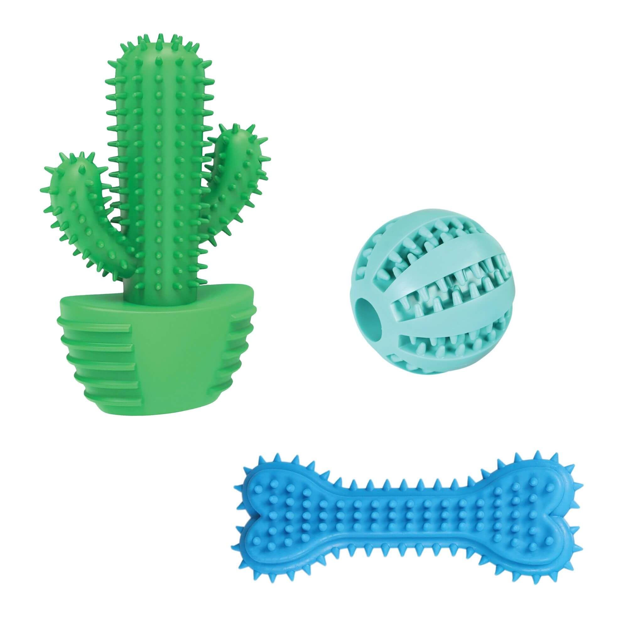 Čisté zoubky, svěží dech a hodiny plné zábavy. To vše najde pejsek pod stromečkem s kousací sadou. Hračky jsou plnitelné pastou či pamlsky. Mechanické čištění zoubků pomocí bodlinek, záhybů a rýh.