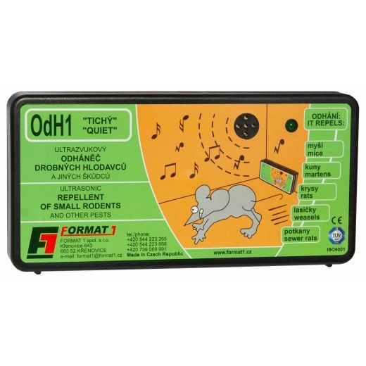 Ultrazvukový elektronický plašič myší, plašič kun, krys, lasiček a potkanů. Jedná se o ryze český produkt s dlouholetou tradicí na trhu (od r. 1991) vyráběný ve firmě FORMAT1 spol. s r. o. Spolehlivý, výkonný, za dobu více jak 29 let ověřený mnoha zákazníky. Neškodný jak pro člověka a domácí hospodářská zvířata.