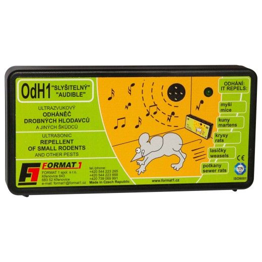 Zvukově-ultrazvukový elektronický plašič myší, plašič kun, krys, lasiček a potkanů. Jedná se o ryze český produkt s dlouholetou tradicí na trhu (od r. 1991) vyráběný ve firmě FORMAT1 spol. s r. o. Spolehlivý, výkonný, za dobu více jak 29 let ověřený mnoha zákazníky. Neškodný jak pro člověka a domácí hospodářská zvířata.