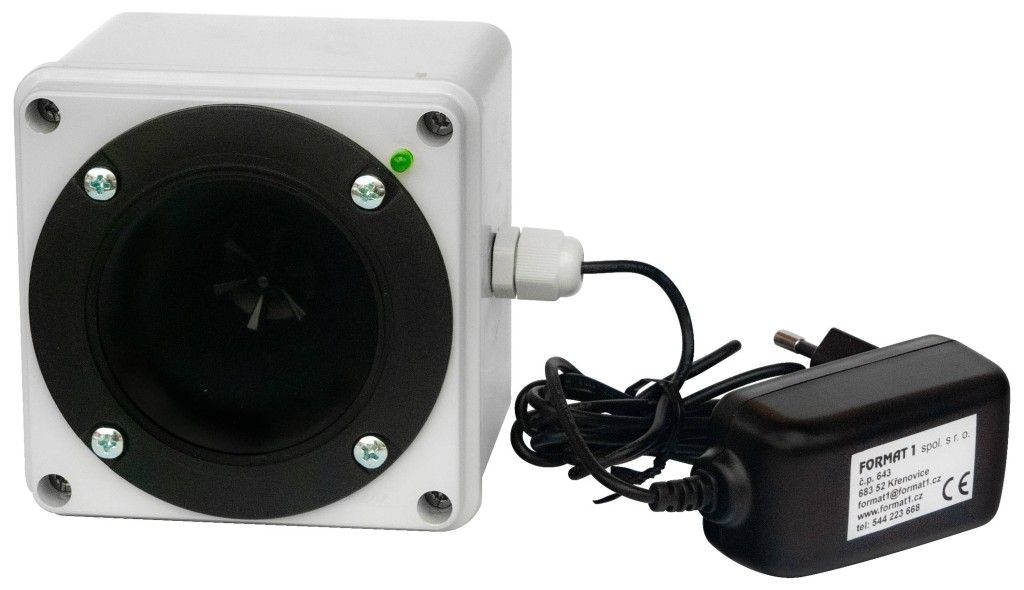 Zvukově-ultrazvukový elektronický odháněč myší, plašič kun, krys, lasiček a potkanů. Jedná se o ryze český produkt s dlouholetou tradicí na trhu (od r. 1991) vyráběný ve firmě FORMAT1 spol. s r. o. Spolehlivý, výkonný, za dobu více jak 29 let ověřený mnoha zákazníky. Neškodný jak pro člověka a domácí hospodářská zvířata.