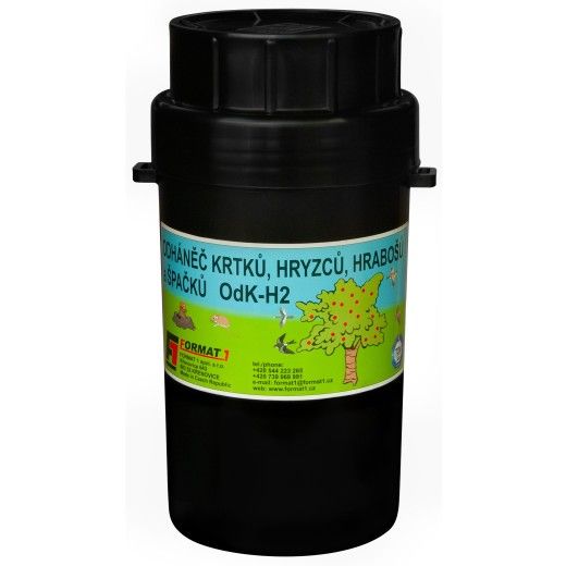 Akustický elektronický plašič krtků, hryzců a hrabošů. Jedná se o ryze český produkt s dlouholetou tradicí na trhu (od r. 1991) vyráběný ve firmě FORMAT1 spol. s r. o. Verze OdKH2 je druhým, vylepšeným modelem oblíbené řady plašiče krtků OdK-H. Tento plašič krtka Velmi spolehlivý, výkonný, za dobu více jak 29 let ověřený mnoha zákazníky. Neškodný jak pro člověka a domácí hospodářská zvířata.