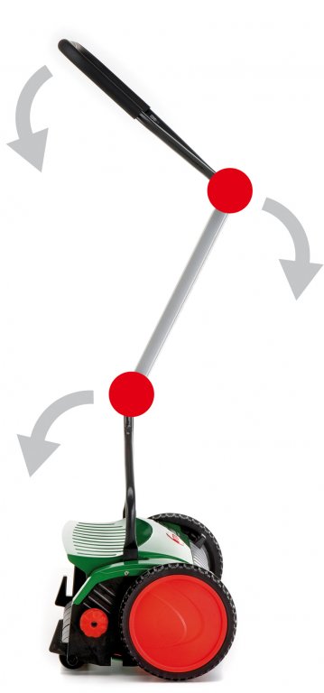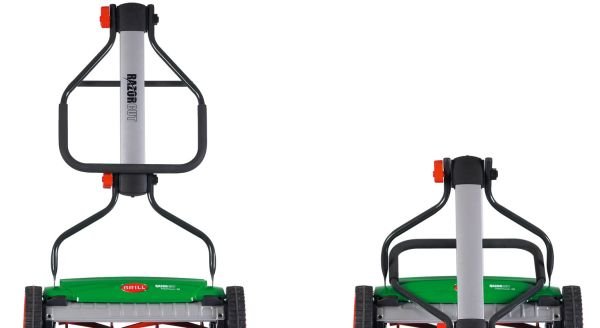Vřetenové sekačky RazorCut s robustním sklopným držadlem v moderním stříbrošedém provedení a ergonomicky tvarovanými řídítky s povrchem z mechovité pryže. Velká kola se speciálním profilem a nadčasově tvarovaný "zadní spoiler" pro usměrnění výhozu posečené trávy zaručují pohodlnou práci.