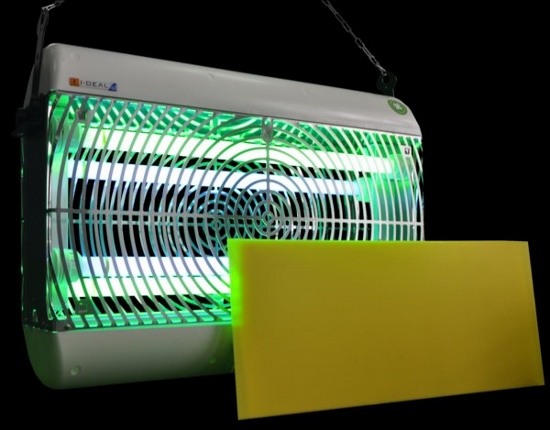 Světelný lepový lapač hmyzu o velkém dosahu pro použití v potravinářském průmyslu, skladech a do velkých průmyslových hal. V lapači hmyzu použito unikátní systém vábení díky kombinaci fluorescenčního záření UVA a lepových ploch. Nová generace UVA zářivek má cca 85 % větší účinnost a zároveň zajišťuje úsporu ve využití elektrické energie (cca 70kW/rok/lapač). Standardně má úroveň ochrany IP 44, je tudíž vhodný do míst se zvýšenou vlhkostí. Všechny lapače hmyzu jsou standardně vybaveny foliovanými zářivkami zabraňujícími roztříštění v případě poškození