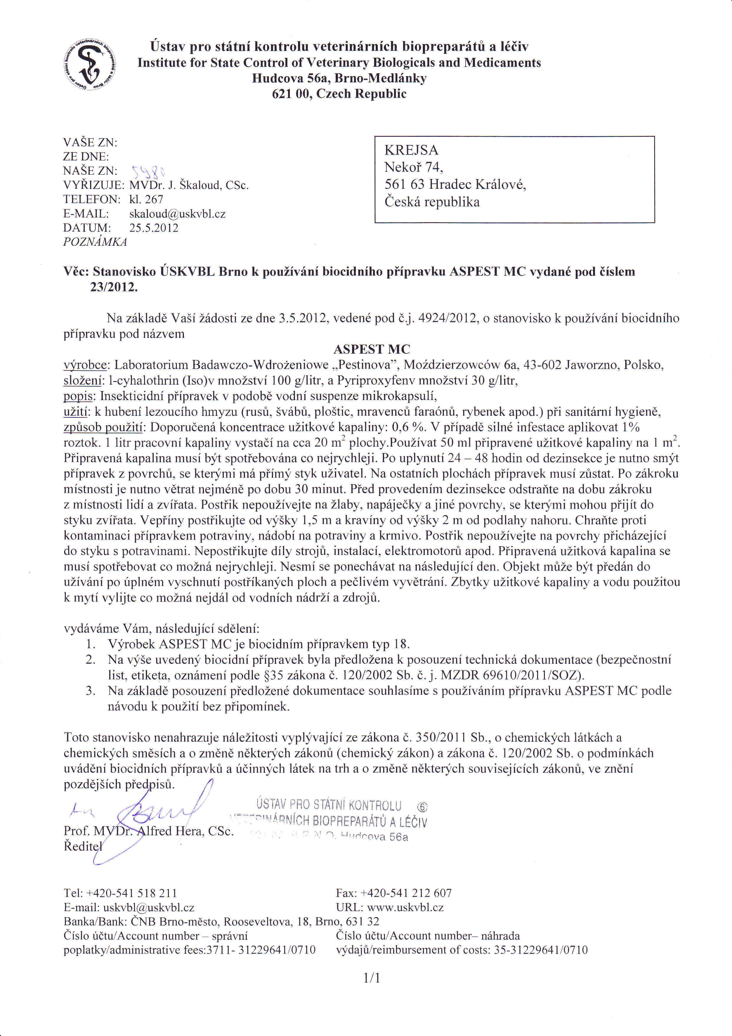 Parametry produktu Insekticid ASPEST MC 1l, Akce 5 + 1 ZDARMA