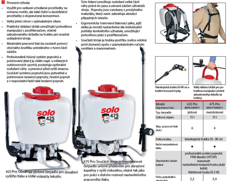 - možnost využití řady příslušenství a náhradních dílů k postřikovačům SOLO