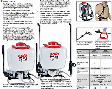 Technické parametry zádového postřikovače SOLO 425 Pro