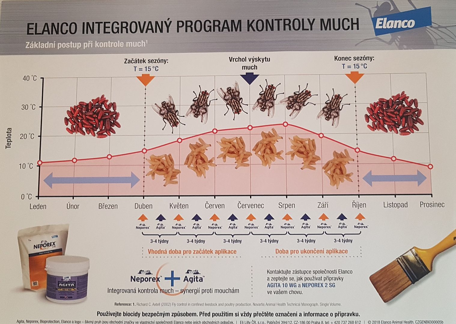 Růstový regulátor, který působí negativně na vývoj larev much.